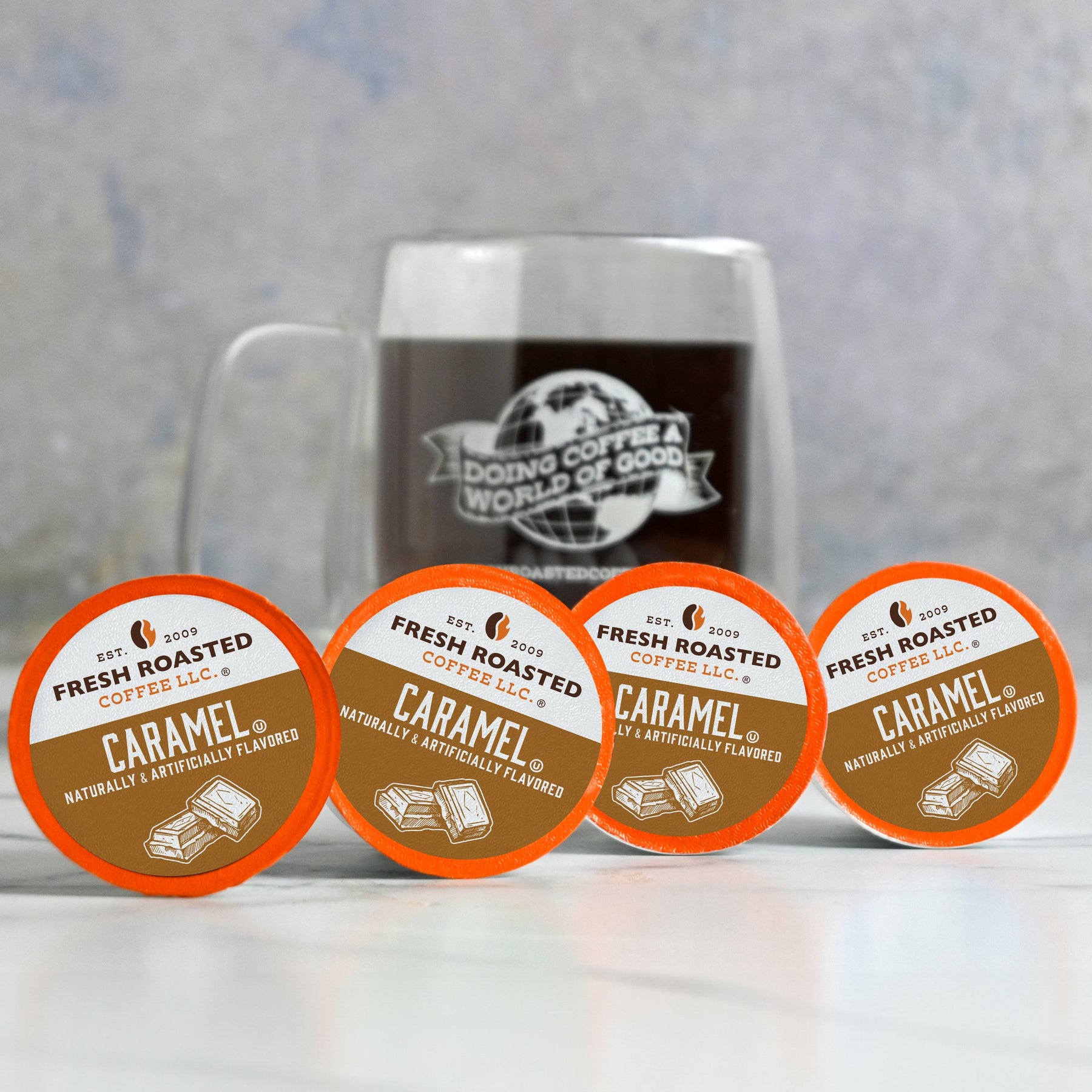 We've taken FRC to the next level of flavor - it's Fresh Roasted Flavored Coffee Pods! Each pod is packed with Fresh Roasted Coffee and our own caramel flavor - nothing else. And just like our traditional coffee pods, each one is nitrogen-flushed to maximize freshness.