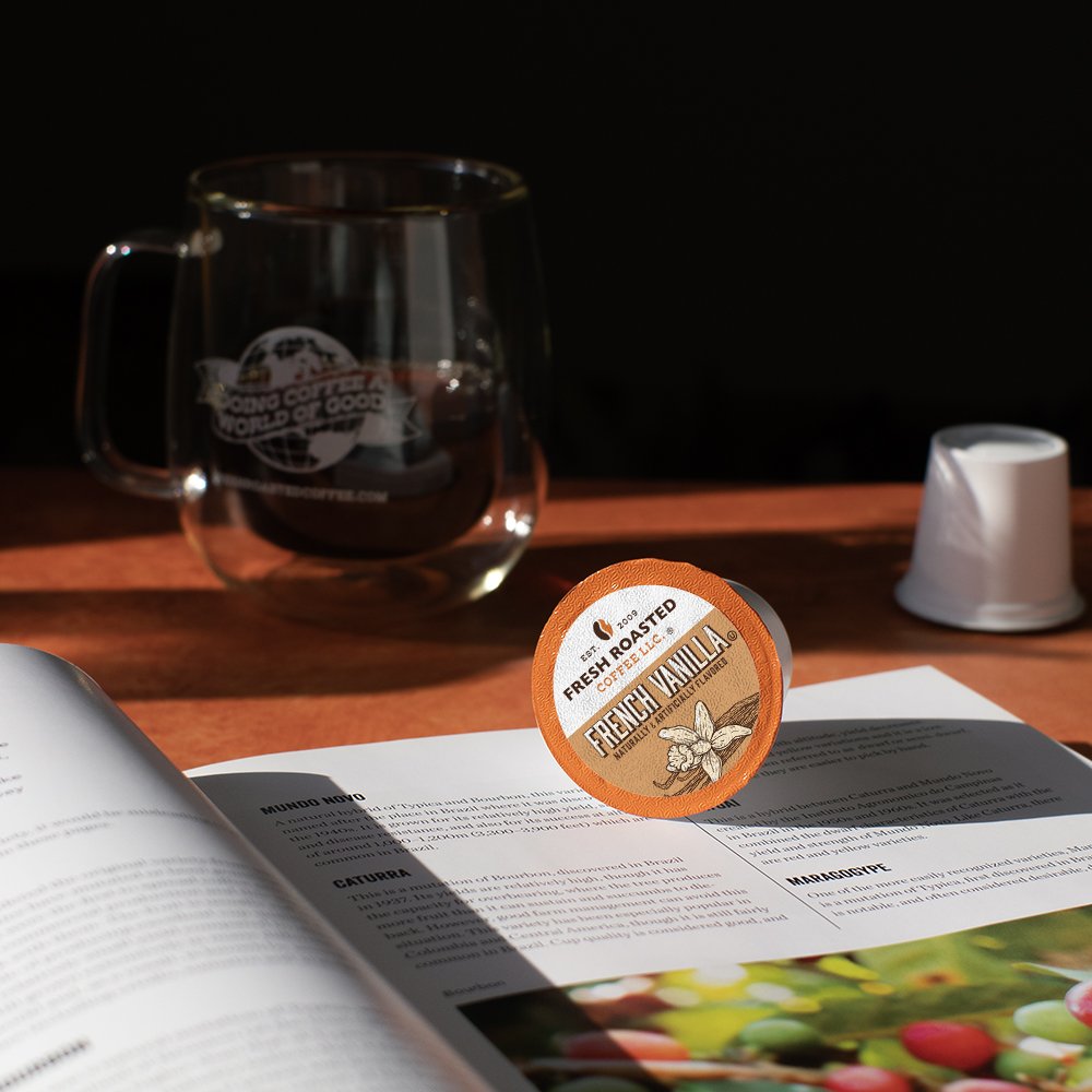 We've taken FRC to the next level of flavor - it's Fresh Roasted Flavored Coffee Pods! Each pod is packed with Fresh Roasted Coffee and our own French Vanilla flavor - no sugar, no artificial sweeteners. And just like our traditional coffee pods, each one is nitrogen-flushed to maximize freshness. Flavored using natural & artificial flavors.