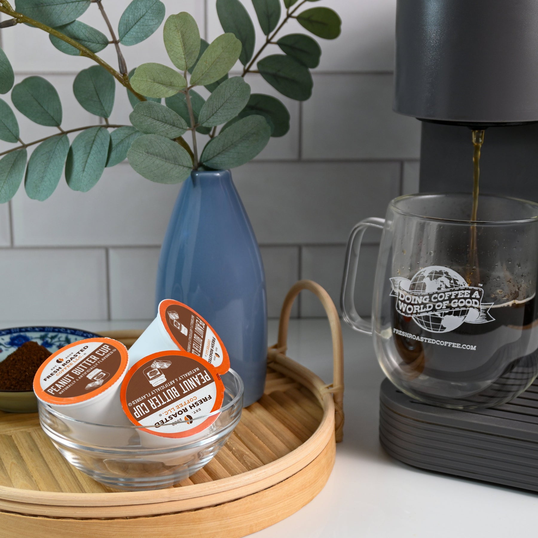 We've taken FRC to the next level of flavor - it's Fresh Roasted Flavored Coffee Pods! Each pod is packed with Fresh Roasted Coffee and peanut-butter cup flavor - no sugar, no artifical sweeteners. And just like our traditional coffee pods, each one is nitrogen-flushed to maximize freshness. Flavored using natural & artificial flavors.