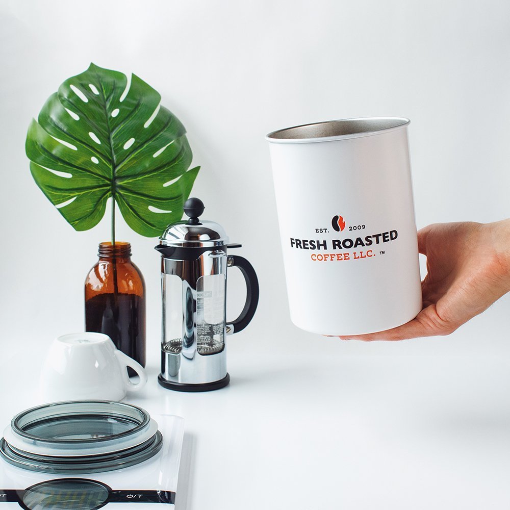 Show your Fresh Roasted Coffee pride and protect your beans from flavor-stealing oxygen! This FRC Airscape® features a patented lid that actively removes and locks out air to preserve and protect freshness and flavor.