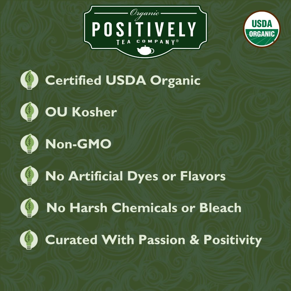 Here at Positively Tea, we're curating the world's most positive tea experience. We believe that high-quality tea products promote overall health and well-being. Tea is meant to be enjoyed, and the process, brewing either loose-leaf or bagged tea, should be as health-conscious as possible. We are proud to offer exclusively bleach and glue-free tea bags so that every Positively Tea customer can enjoy the natural flavors and benefits without the use of toxic glues and chemicals. Our entire product line is USDA certified organic and sourced with the utmost care so you always arrive at an outstanding cup of tea.