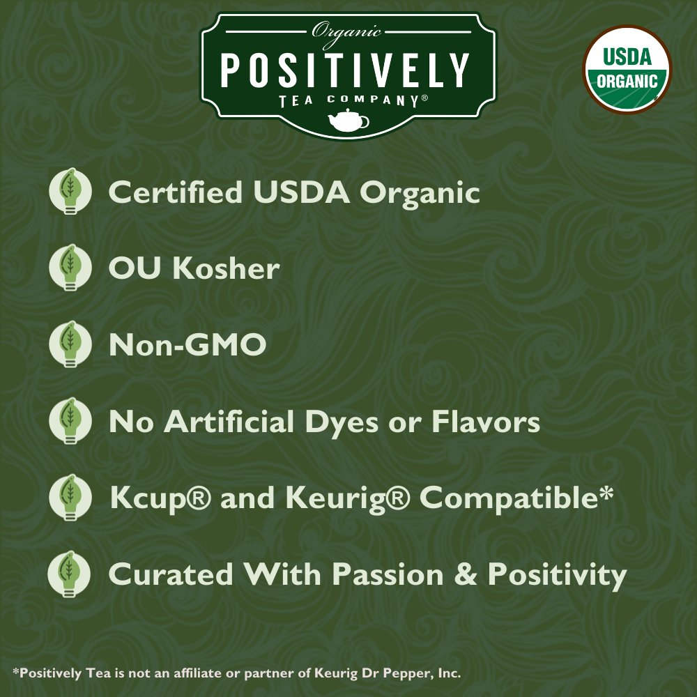 For use in Keurig® 1.0, 2.0, K-Supreme®, and compatible K-Cup® brewing systems. Keurig, K-Cup, and K-Supreme are registered trademarks of Keurig Dr Pepper Inc. Positively Tea is neither affiliated with nor approved by Keurig Dr Pepper Inc.