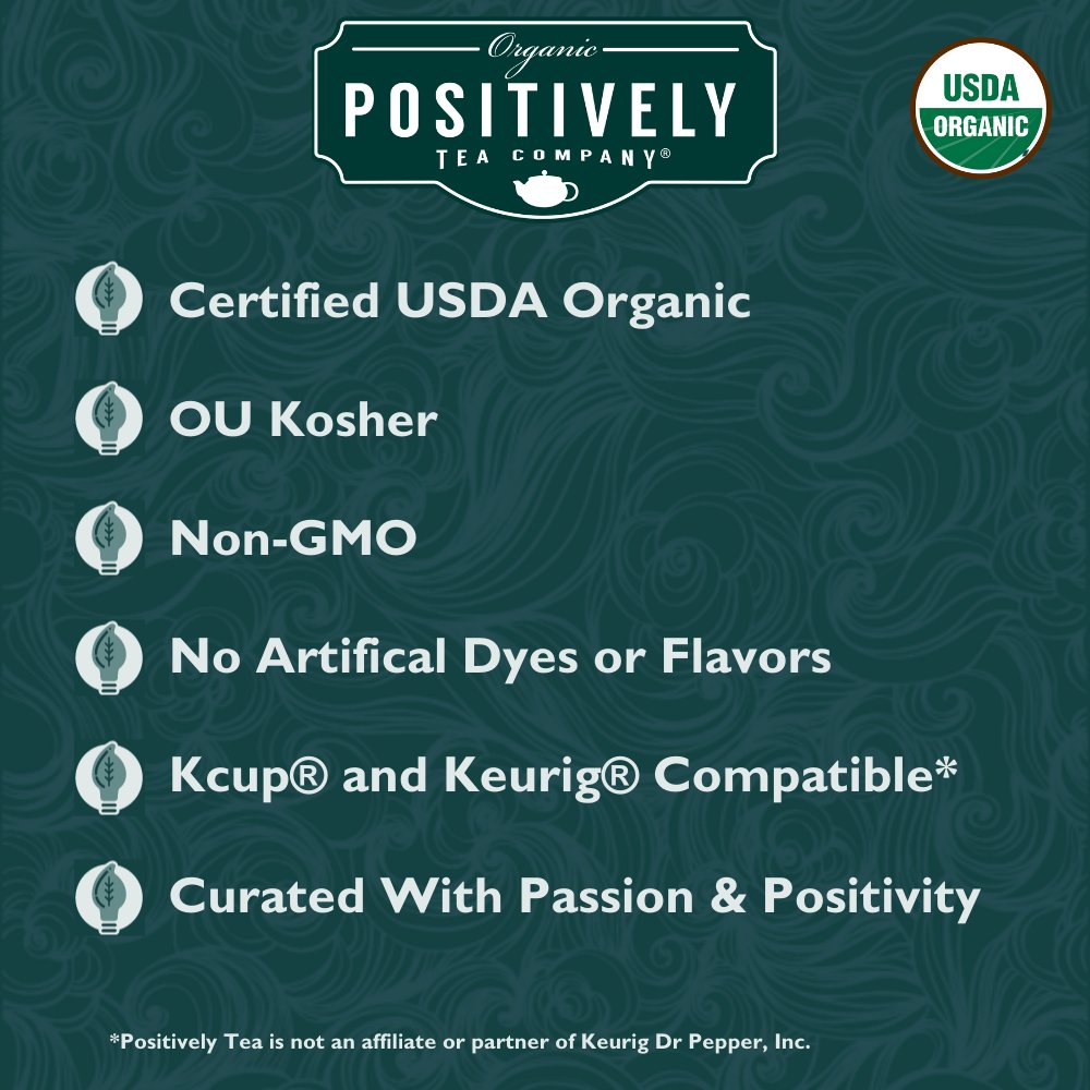 For use in Keurig® 1.0, 2.0, K-Supreme®, and compatible K-Cup® brewing systems. Keurig, K-Cup, and K-Supreme are registered trademarks of Keurig Dr Pepper Inc. Positively Tea is neither affiliated with nor approved by Keurig Dr Pepper Inc.