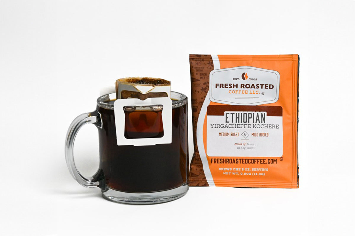Bring the quality of pour-over coffee anywhere with our single-serve pour-over kits. We expertly grind your coffee for optimal flavor, then package it in individual mesh filter bags with built-in arms for easy brewing. Each filter bag is sealed inside a custom pouch to maintain freshness.